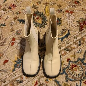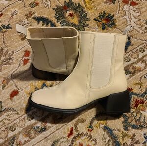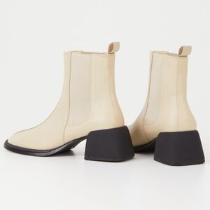 Ansie is the heeled Chelsea boots with a contemporary look. The style is crafted in light beige leather featuring wide, rounded toes, tonal, elastic side panels and decorative stitching along the upper. The flared block heels measure 59mm. Details include heel-loop tabs.