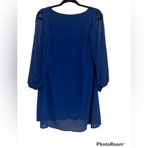 Beautiful Royal Blue Vague Fashion size medium dress. Slit sleeves, about mid thigh length. Good for a night out on the town with some heels or work with a blazer