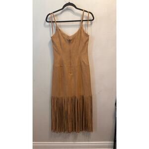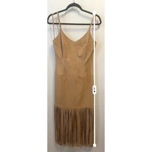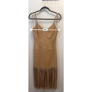 VAKKO Women's boho Faux Suede Fringe Sheath tan Dress size small