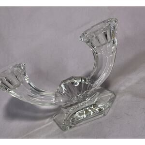 VAL ST LAMBERT double arm Crystal Candlestick Candelabra, Art Deco, signed