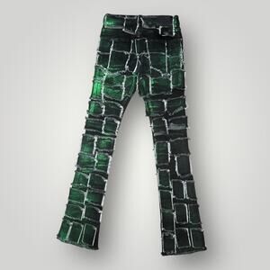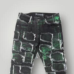 VALABASAS Patchwork Distressed Jeans Green Black Size 28 L35 Men’s Designer Denim