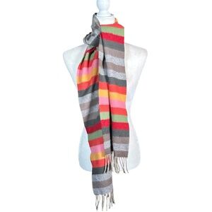 VALENTIN FRAAS Vintage 100% Cashmere Striped Fringe Scarff