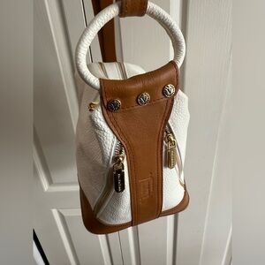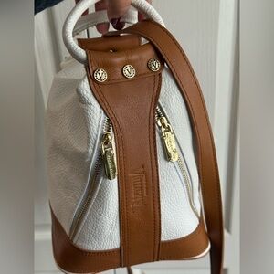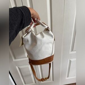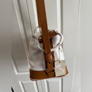 This stylish two tones bucket convertible bag into a shoulder bag,crossbody,Hobo and Backpack,perfect for any occasion,with gold accents and pure leather,in new condition with tags,Its versatile look complements any outfit, making it a must-have accessory,accept offers,free gift with each purchase,same day shipping.