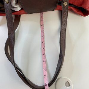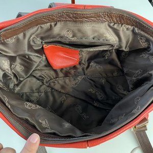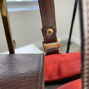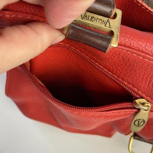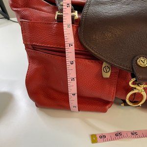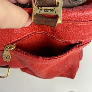 VALENTINA Double Strap Soft Red Brown Leather Zipper Pouch Pockets Gold Hardware