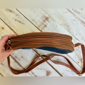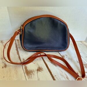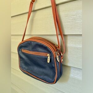VALENTINA Genuine Leather purse Multi Zipper Crossbody Bag navy blue brown EUC