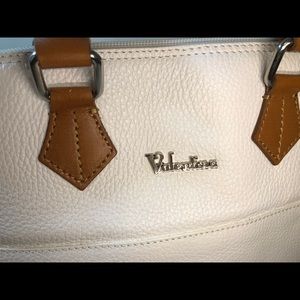 ITalian designed leather satchel handbag. White leather/ brown leather handles