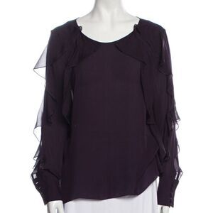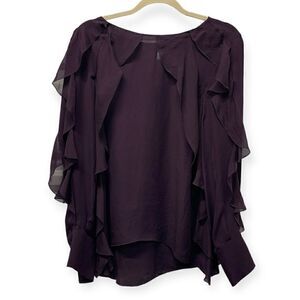 VALENTINA SHAH Purple Plum Ruffle Long sleeve Silk Blouse, NWOT