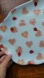 Adorable melamine strawberry waffle tray with scalloped edges. Dishwasher safe.
