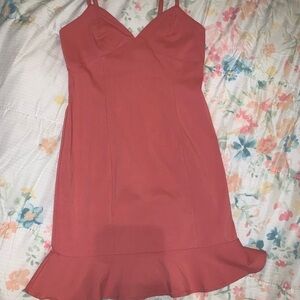 This gorgeous Dress is a rosy pink color and is fitted! Lovely Ruffle at the bottom for some added flare! Worn once for my engagement pictures 😊❤️ Was so beautiful and is great for any season! Very versatile and buildable piece for your wardrobe! Would be so cute with a white coat for a Christmas/winter/holiday party or event!! Style and turn heads with these gorgeous dress😍😍 Definitely accentuates the curves in the best way