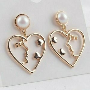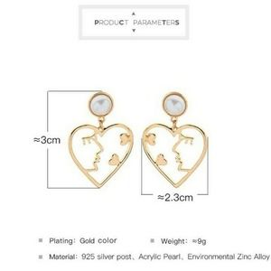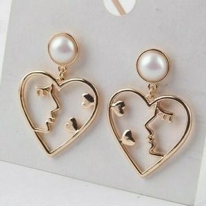 VALENTINES Gold Earrings Hollow Heart Faces Kissing