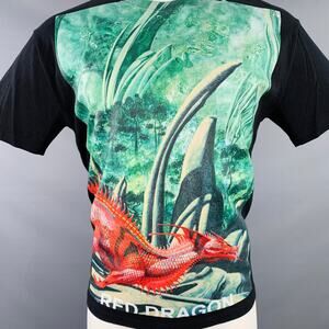 VALENTINO 2019 Size S Black Green Red Dragon Graphic Cotton Crew Neck T-shirt