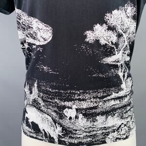 VALENTINO 2020 Size M Black White Landscape Graphic Cotton Crew Neck T-shirt