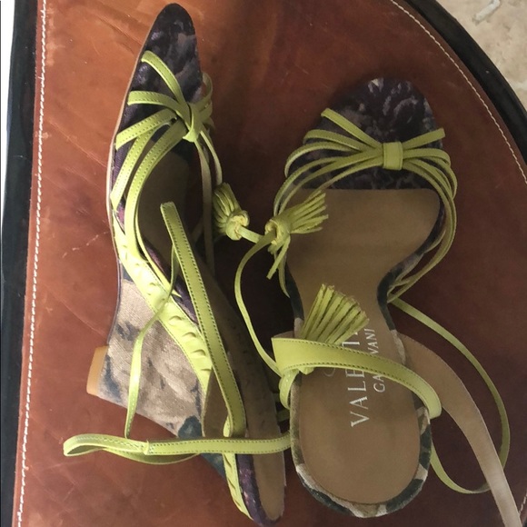 Gorgeous Valentino fabric covered heels ๐ perfect condition and romantic shoes for the spring and summer. Pistachio green and some purple details from the fabric. Just lovely ๐