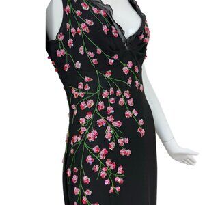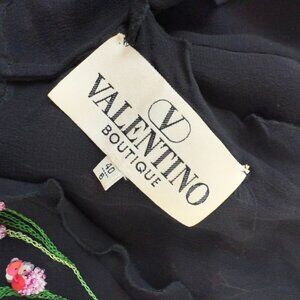 VALENTINO BOUTIQUE 90's Vintage Floral Beaded Black Silk Gown Maxi Dress