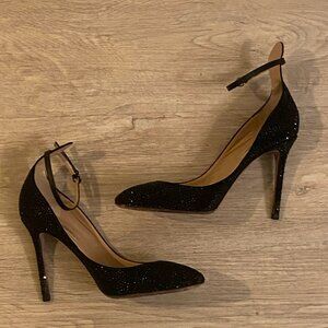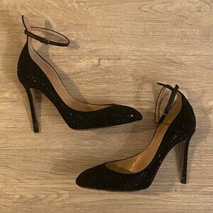 Beautiful black Valentino Garavani round toe pumps with ankle straps and black crystal embellishments. Excellent used condition! Signs of wear on soles. See pictures for details! Shoes come in original box.