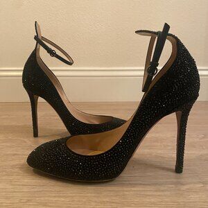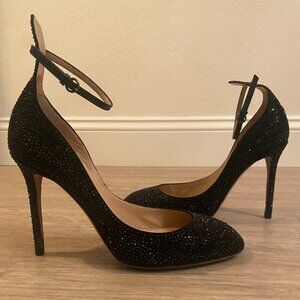 VALENTINO Black Crystal Embellished Ankle Strap Pumps - EU 39