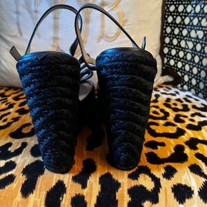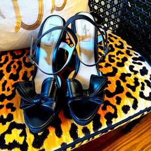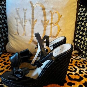 Gorgeous Valentino Black Leather Bow Espadrille Wedges in great preowned condition!