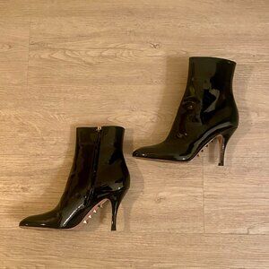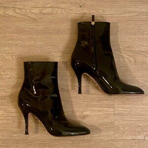 VALENTINO Black Patent Leather Gold Stud Stiletto Booties