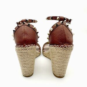VALENTINO Brown Rockstud Espadrille Wedge Heels Size 40 Peep Sandal Ankle Strap