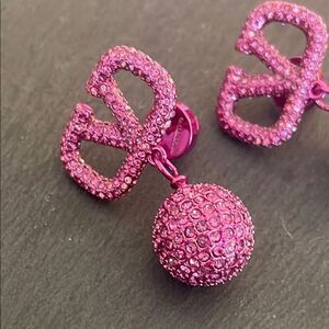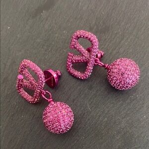 Stylish pink beaded drop earrings with a unique design. Perfect for adding flair to any outfit.