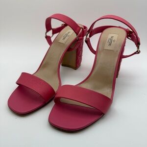 VALENTINO FREE ROCKSTUD SANDALS CHUNKY HEEL PINK SIZE 40.5