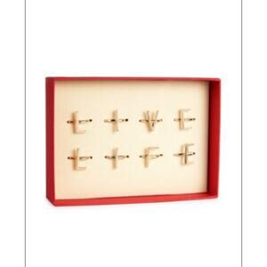 Valentino's 8-piece ring set features a goldtone letter design that spells out Live and 'Life.
