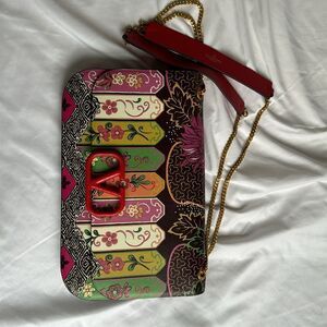 VALENTINO GARAVANI Authentic Flower Shoulder Bag with Snakeskin Logo