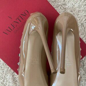 VALENTINO GARAVANI Authentic Rockstud Peep-toe Shoes. Color: tan/nude. Size: 37 (EUR), 7 US run true to size.