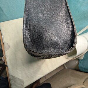 Meticulously crafted of black grainy calfskin this clutch fully embodies the designer's famous aesthetic. Looks "good for its age" doesn't do this treasure justice. In keeping with Garavani tradition the bag is simple in design- a zipper top closure and 1 slip pocket. With retouched edges and freshly hydrated leather this clutch will continue to impress for time to come.