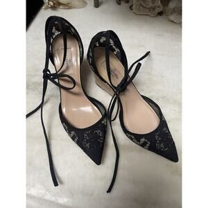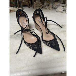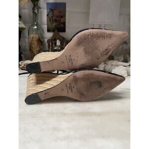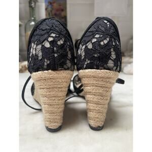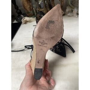 VALENTINO GARAVANI Black Lace Ankle Bow Straps Pointy Toe Espadrilles 38 unique