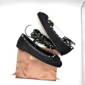 VALENTINO GARAVANI Black Rockstud Ballerina Flat Nero 38.5