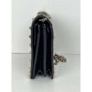 VALENTINO GARAVANI Pebbled Calfskin Rockstud Envelope Wallet on Chain Black