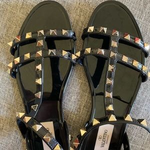 SOLD VALENTINO GARAVANI Rockstud Flat Rubber Sandal. Size 38 or Women’s 8. Like New! Includes Original Box, Dust Bag, Authenticity Cards & Extra Stud.