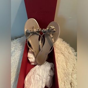 POUDRE VALENTINO GARAVANI ROCKSTUD SANDALS| SIZE:9 (Sandal runs small, seller is a size 8 but fits a 9)| BOX & AUTHENTICATION CARD INCLUDED ✨ FYI: Center Rockstud on left sandal missing but extra studs included to replace (25% discount)
