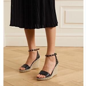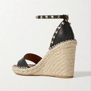 VALENTINO GARAVANI Rockstud 105 leather sandals espadrilles wedges