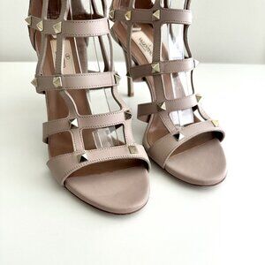 VALENTINO GARAVANI Rockstud Caged Ankle Zip Heels Sandals in Taupe!
