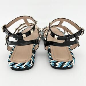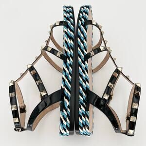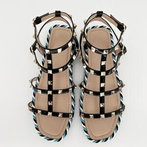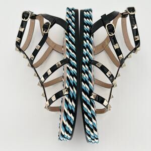 VALENTINO GARAVANI Rockstud Caged Leather Sandals EU 38 US 8 Blue Black Flats