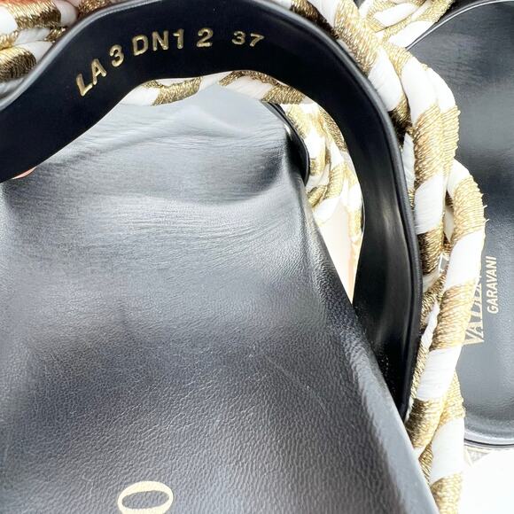 VALENTINO GARAVANI Rockstud Metallic Rope Slide Espadrille EU 37 Gold Sandals