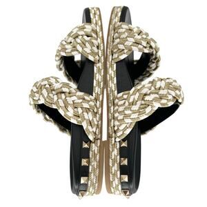 VALENTINO GARAVANI Rockstud Metallic Rope Slide Espadrille EU 37 Gold Sandals