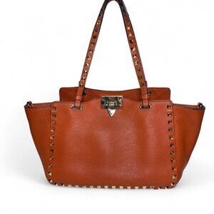 VALENTINO GARAVANI Soft Orange Leather Rockstud Tote Small, Great Condition