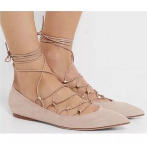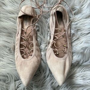 VALENTINO GARAVANI Suede Rockstud Lace-Up Ballet Flats. Size 37.5 (7.5). Great Condition- minor signs of wear; minor scuffs/marks as shown. Please review all photos