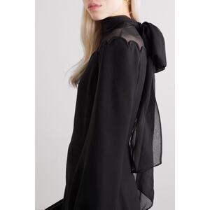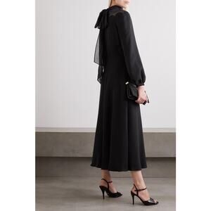 VALENTINO GARAVANI Tulle-trimmed scalloped silk-crepe midi dress Size 40