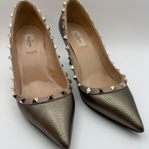 Gorgeous 85mm RockStud pumps in gold. Has Vibram soles already done. Size 40.5. Some wear on right heel cup.