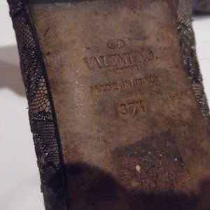 VALENTINO Garavani Caviar Crystal Lace Leather Italy Embellished Loafer Shoes