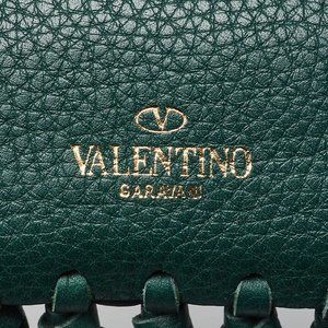 VALENTINO Garavani Green Leather Scarab Fringe Clutch Bag