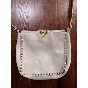 VALENTINO Garavani Rockstud Dove Gray Small Hobo Crossbody Shoulder Bag - FLAW