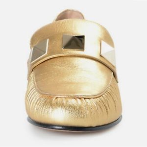 WORN ONCE: Valentino Gold loafers with 3 studs across front. Size 37/7. Original box. Beautiful shoes.