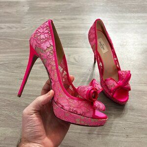 VALENTINO Lace Bow Accent Pumps (SIZE 40.5)