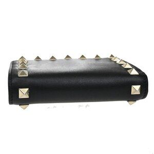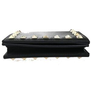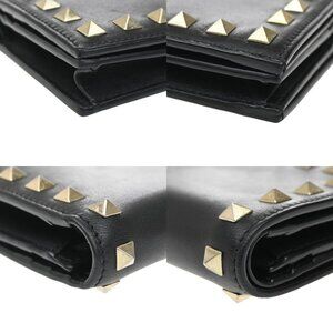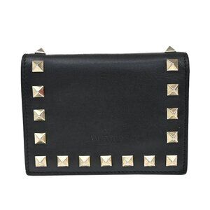 VALENTINO Logo Studs Compact Bifold Wallet Purse Leather Black GHW Italy 69KB160