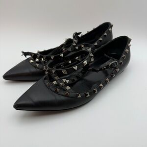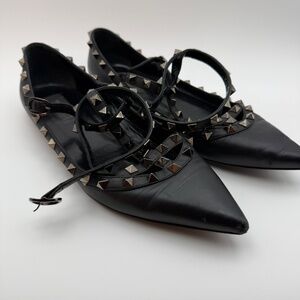 Pre-loved but have plenty of wear left!! Valentino caged flats in a size 40.5. These are the NOIR edition, black smooth leather with gun metal studs.